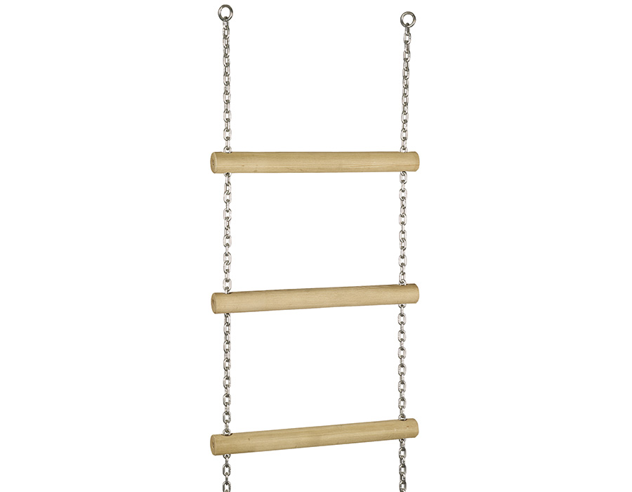 Strickleiter in Edelstahl, verlängert für Bodenverankerung, Eschensprossen druckimprägniert.