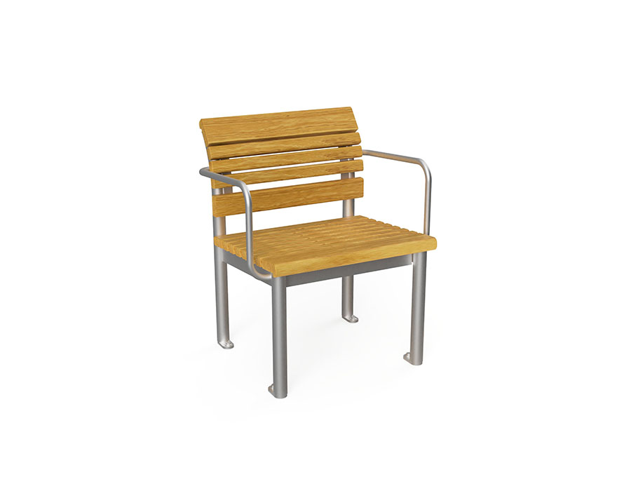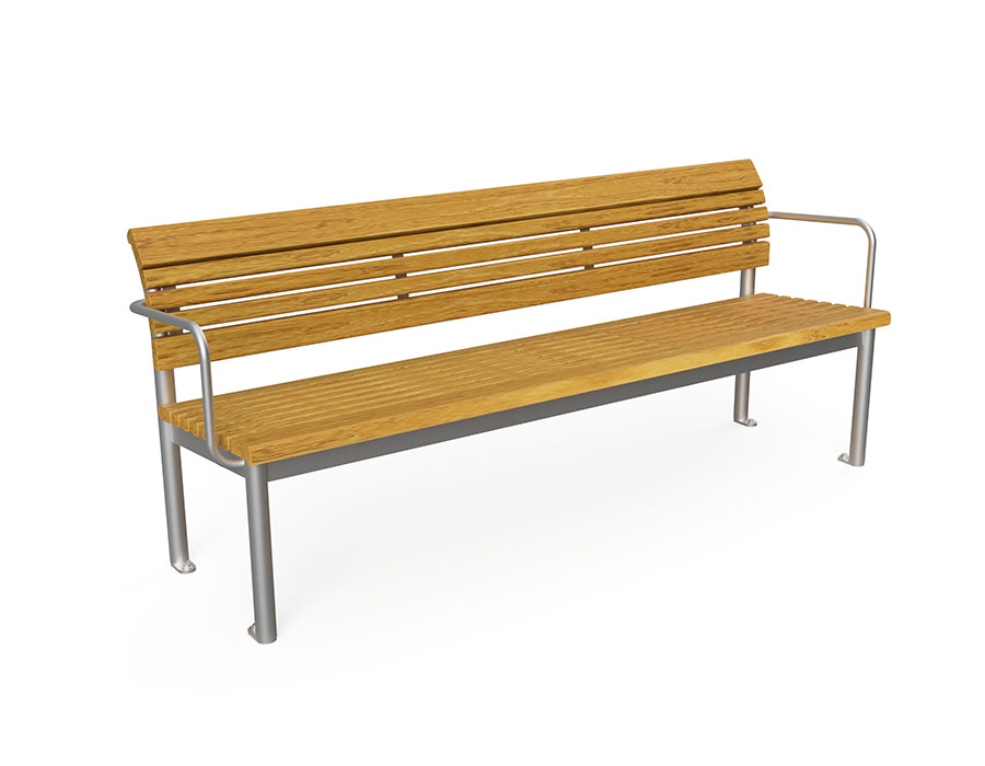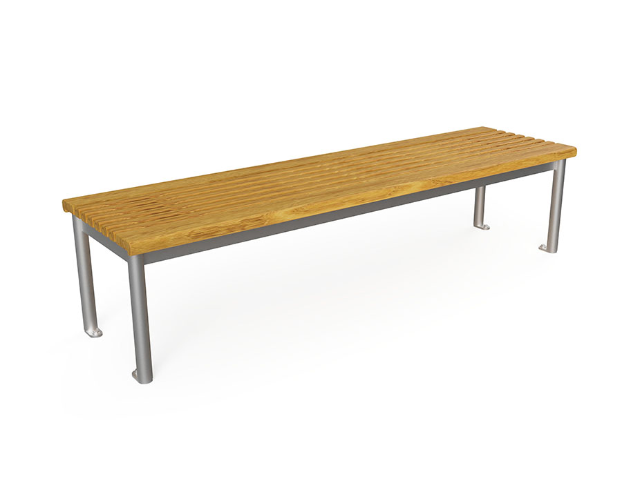 Parkbank Ville de Lausanne aus Schweizer Lärche behandelt, Länge 180 cm, ohne Rückenlehne, Stahlkonstruktion feuerverzinkt und zusätzlich lackiert in Farbe patina moderna.