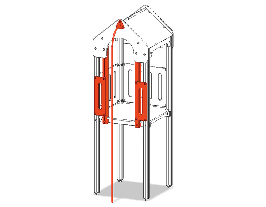 Der Spielturm wird komplett zusammengebaut geliefert. Die Anbauelemente müssen vor Ort befestigt werden.