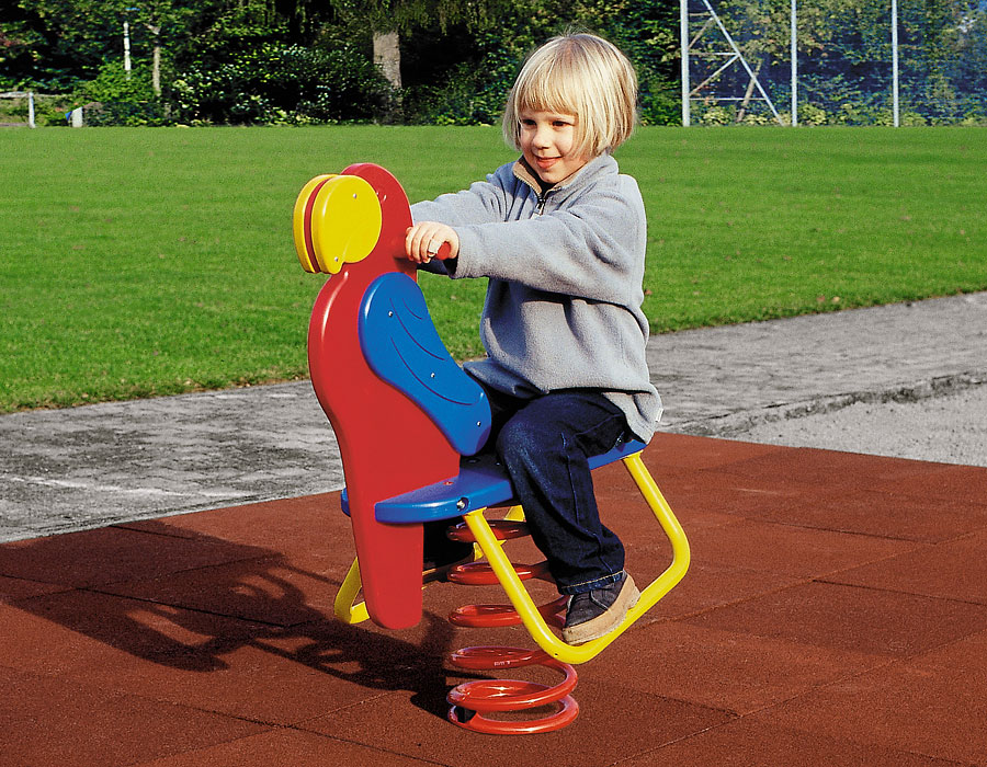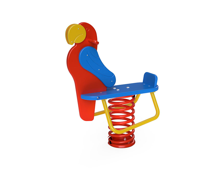 Pagagei aus Polyäthylen, mit Spiralfeder lackiert, inkl. Fussgestelle feuerverzinkt für minimale Einbautiefe 50 cm.