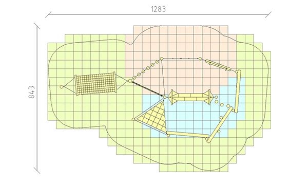 Balancier-Parcours aus chemisch unbehandeltem Robinienkernholz geschliffen, Aufhängevorrichtungen aus Edelstahl, Mammutseile stahlarmiert.