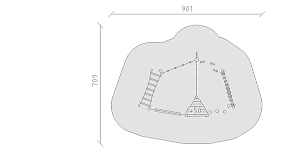 Balancier-Parcours aus chemisch unbehandeltem Robinienkernholz geschliffen, Aufhängevorrichtungen aus Edelstahl, Mammutseile stahlarmiert.