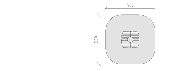 Podest geschwungen aus Schweizer Lärchenholz roh, 2-teilig, ø 60 cm, mit Konsolen aus Stahl feuerverzinkt, für minimale Einbautiefe 50 cm.