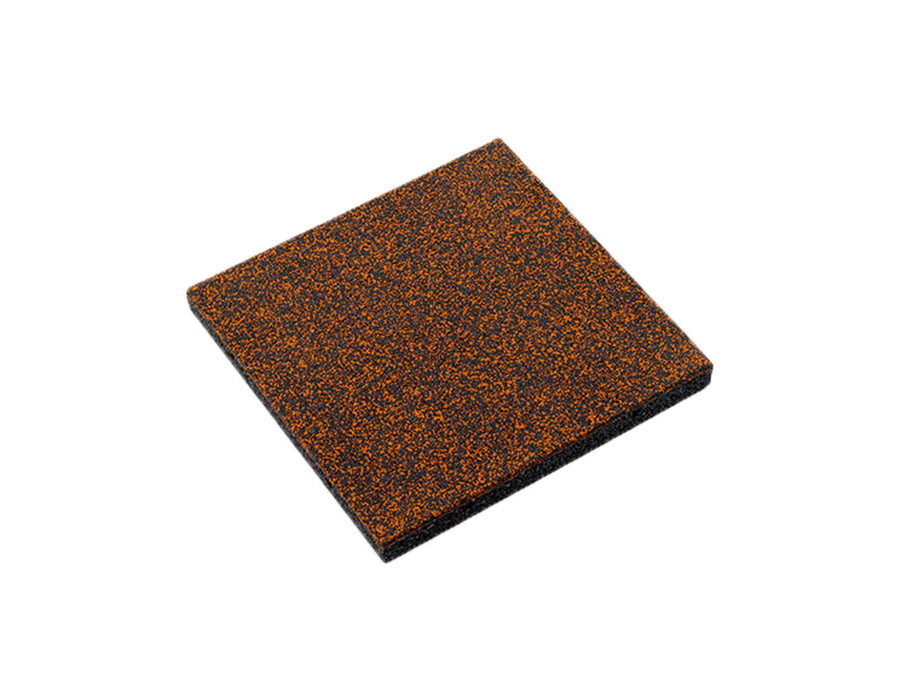 Vollgummiplatte Royal aus EPDM-Neugummi, Format 500 x 500 mm, Dicke 50 mm, Farbe orange/schwarz nach RAL 2008/9004, für Fallhöhe bis 150 cm, inkl. Steckverbinder.