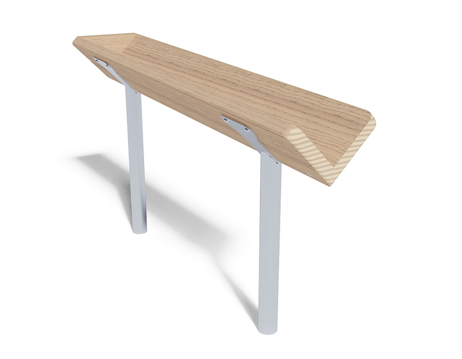 Water gutter with side elements made of raw Swiss larch, length 100 cm, foot supports made of stainless steel, for minimum installation depth 50 cm.