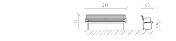Park bench made of raw Swiss larch, length 200 cm, with backrest and armrests, steel construction hot-dip galvanised and additionally lacquered in patina moderna.
