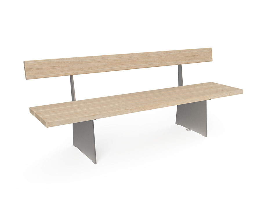 Park bench Teret made of raw Swiss larch, length 200 cm, without backrest, hot-dip galvanised steel brackets.