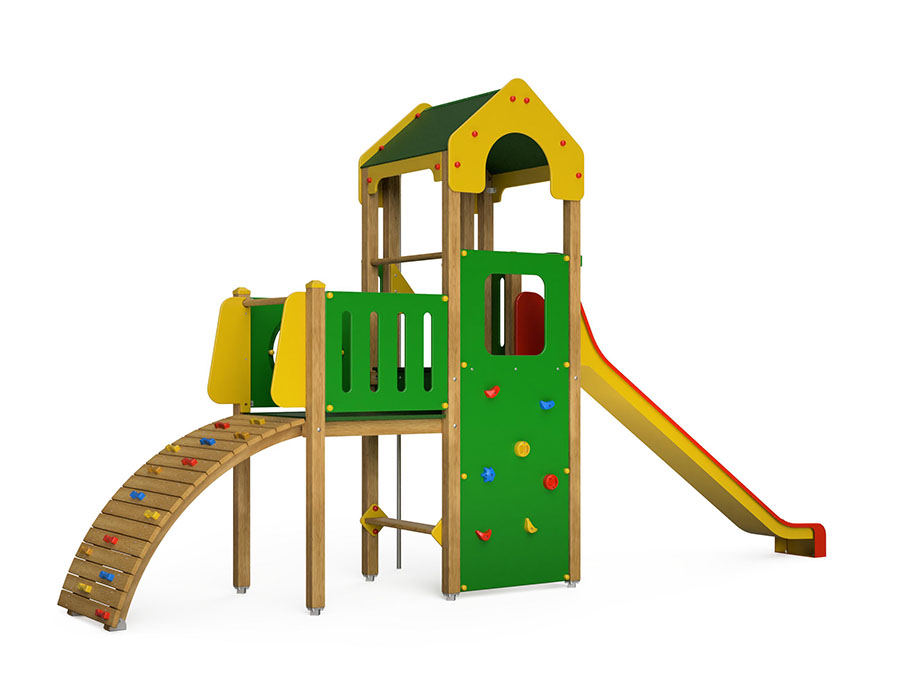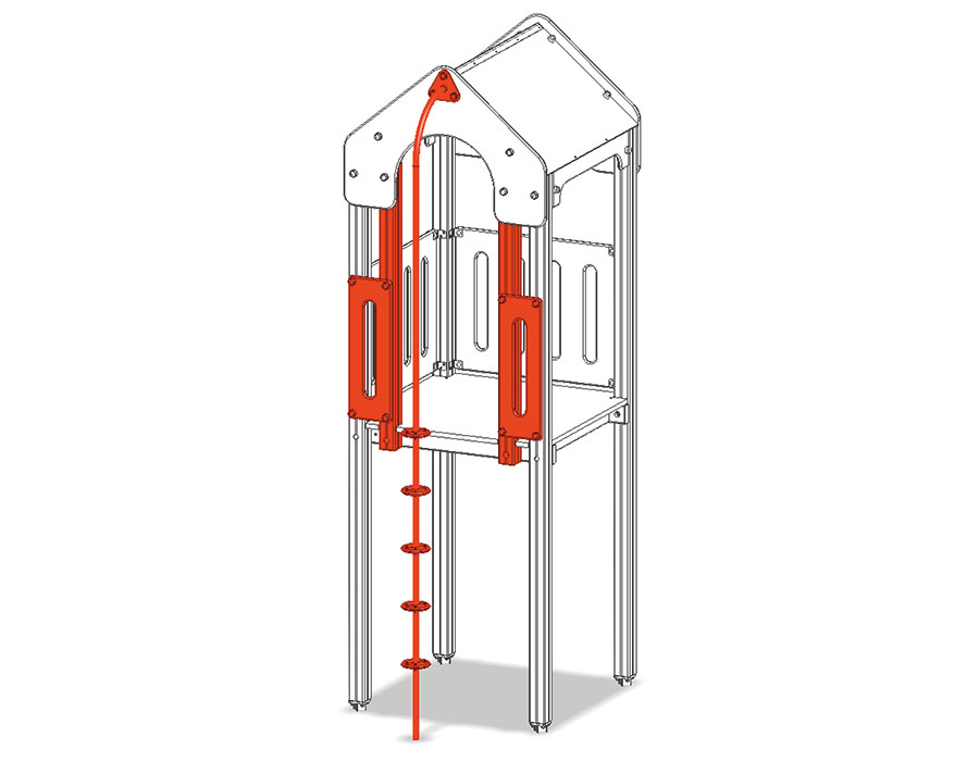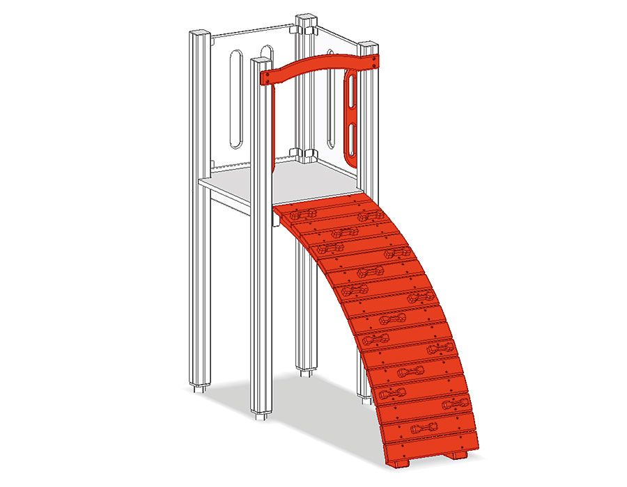 The playtower is delivered completely assembled. The add-on elements must be fastened on site.