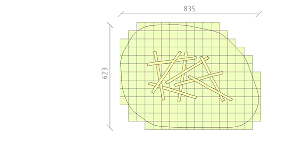 Mikado II made of chemically untreated robinia heartwood, sanded, incl. steel foot brackets for minimum installation depth 60 cm.