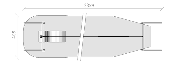 Cable slide made of hot-dip galvanised steel tube, length 20 m, version for flat terrain with launch pad. Launch pad made of multi-glued, pressure-impregnated Swiss pine with platform height 60 cm, minimum installation depth 80 cm.