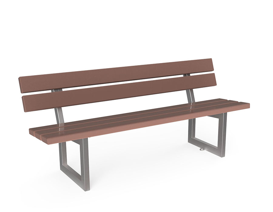 Banc de parc avec lattes en matières synthétiques, couleur brun, longueur 180 cm, sans dossier, construction en acier galvanisé à chaud.