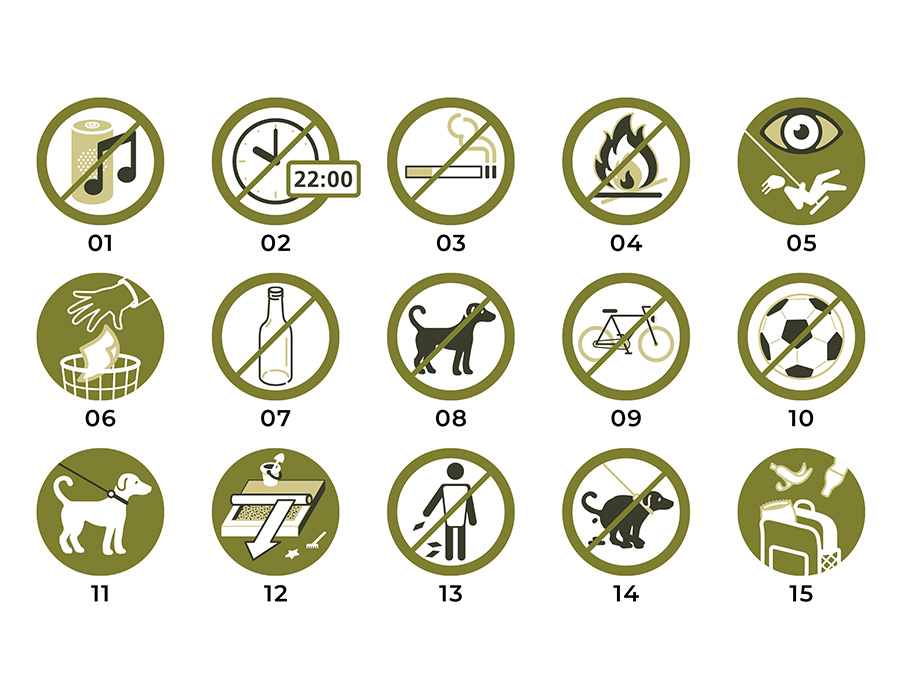 Panneau indicateur individuel en plaque en aluminium, avec quatre symboles, dimensions 320 x 440 mm, imprimé avec surface deprotectin stratifiée, modèle sur poteau, avec montant tubulaire galvanisé à chaud, deux symboles d'autosélection.