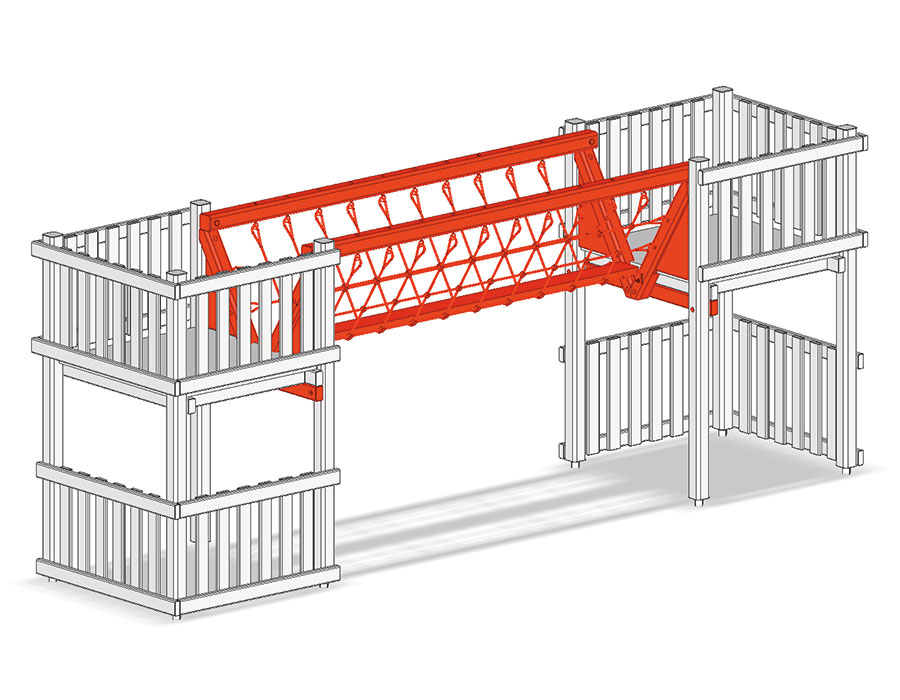 Passerelle à filet, hauteur 80 cm, largeur 114 cm, longueur 300 cm, avec 2 rampes, d'une tour à l'autre.