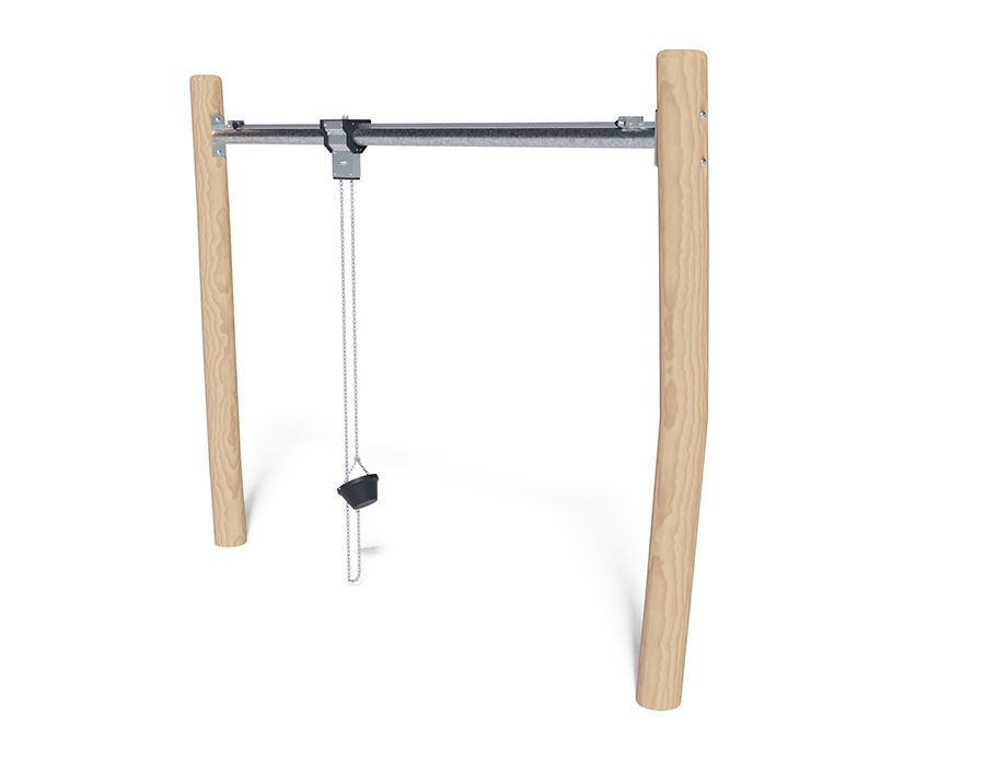 Grue coulissante en bois de robinier non traité chimiquement et poncé, barre transversale en acier galvanisé à chaud, chariot en acier inoxydable avec galets en plastique, cuve noire avec palan à chaîne.