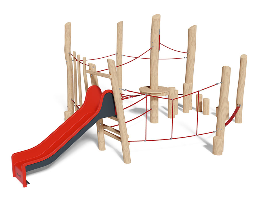 Percorso d'equilibrio fatto di durame di robinia non trattato chimicamente e levigato, dispositivo di sospensione in acciaio inossidabile, corde mammut in acciaio rinforzato.