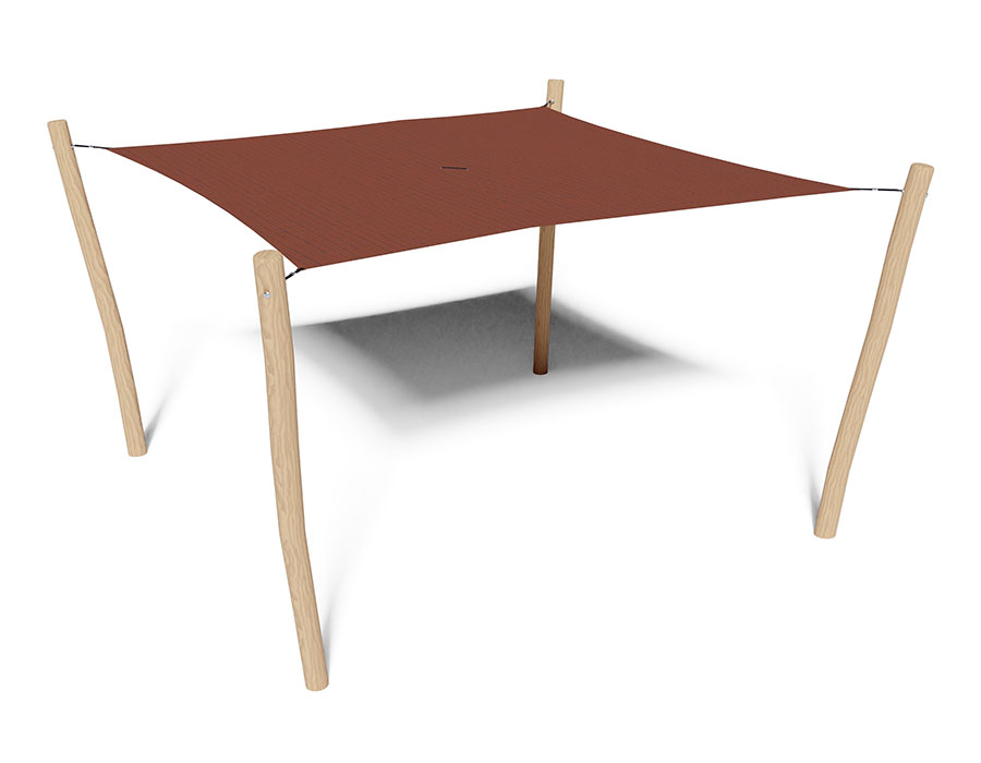 Protezione solare fatto di durame di robinia non trattato chimicamente e levigato, dimensione della rete 400 x 400 cm, rete di protezione in tessuto HDPE, con occhielli integrati, colore secondo la collezione, per una profondità di installazione minima di 60 cm.
