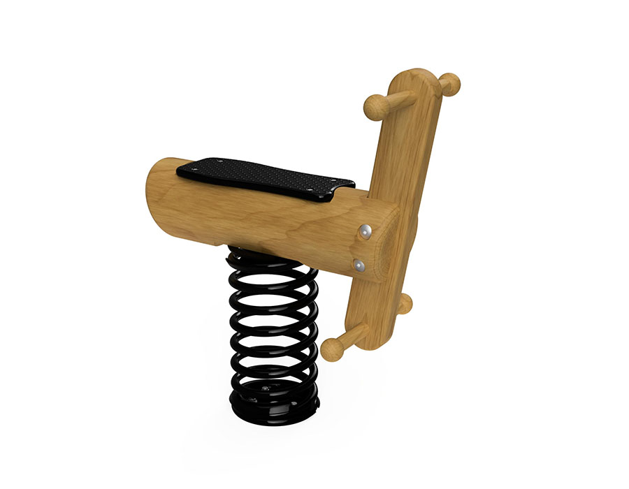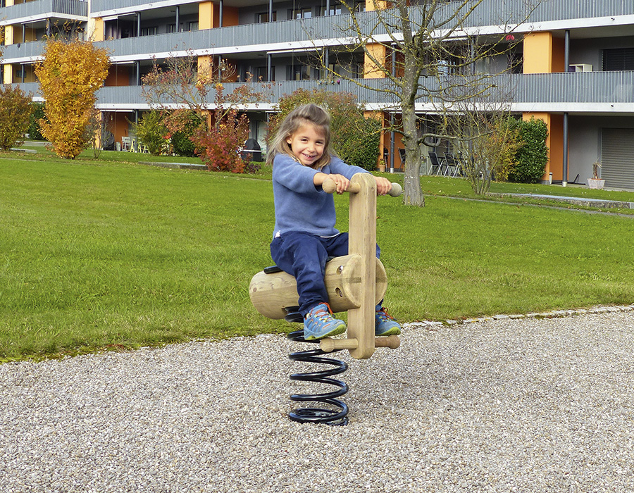 Lama in legno di pino svizzero multincollato e impregnato a pressione, con sedile in polietilene, molla a spirale zincata a caldo e ulteriormente verniciata, incluso console del piede in acciaio per una profondità di installazione minima di 50 cm.