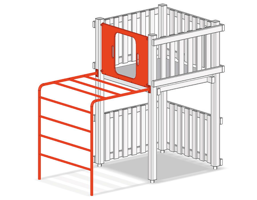 Scala a pioli di metallo per l'altezza della piattaforma 120 cm, con elemento di parete in polietilene.