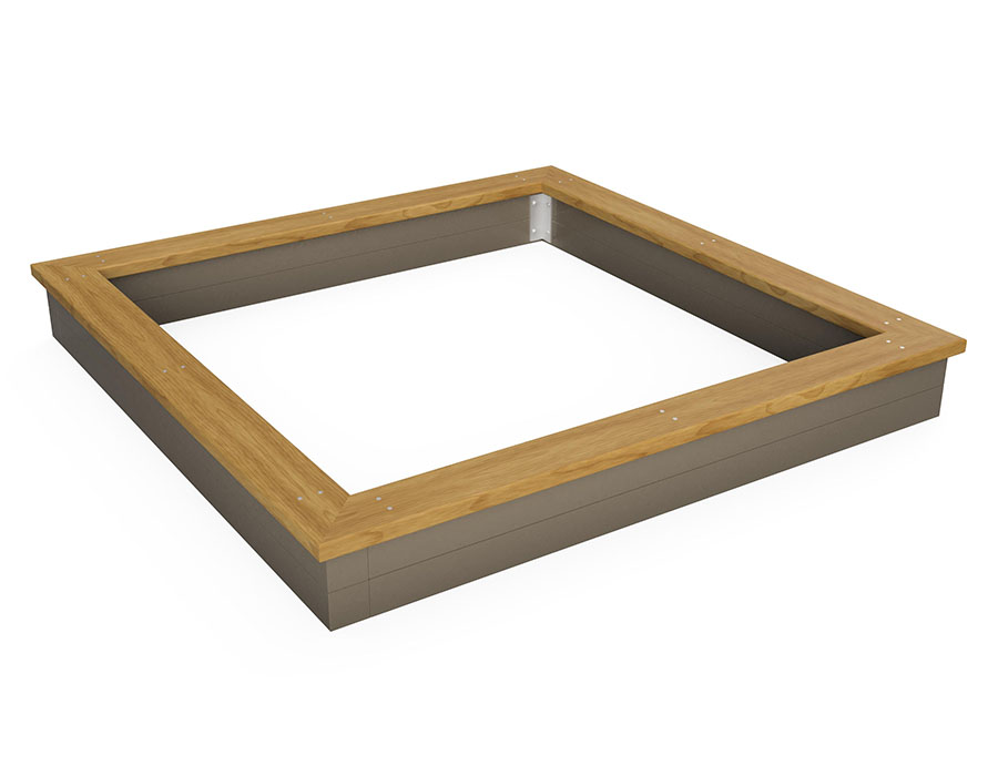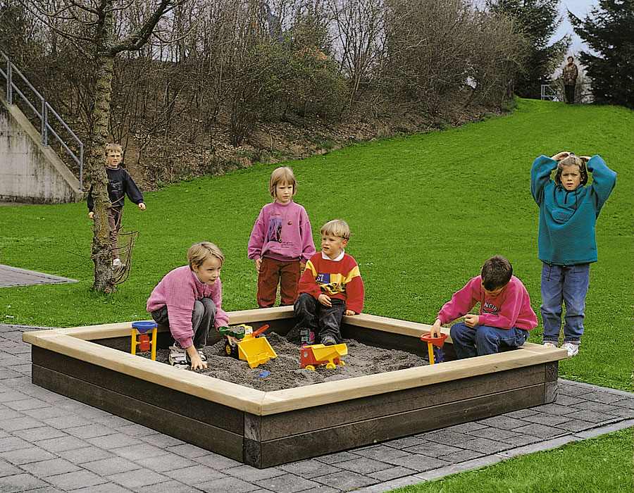 Sabbiera di travi di plastica riciclata, colore marrone, grandezza 200 x 200 cm, due strati, con pannello a sedere impregnato su pressione.