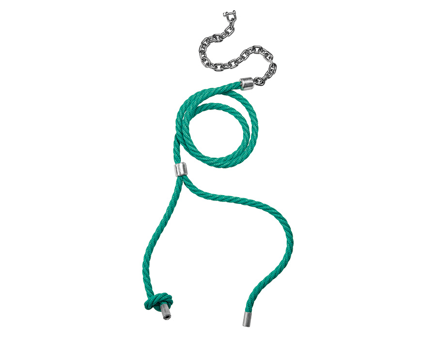 Corda con inserti d'acciaio, colore verde, con collegamento a catene, adattabile al seggiolino di pneumatico.