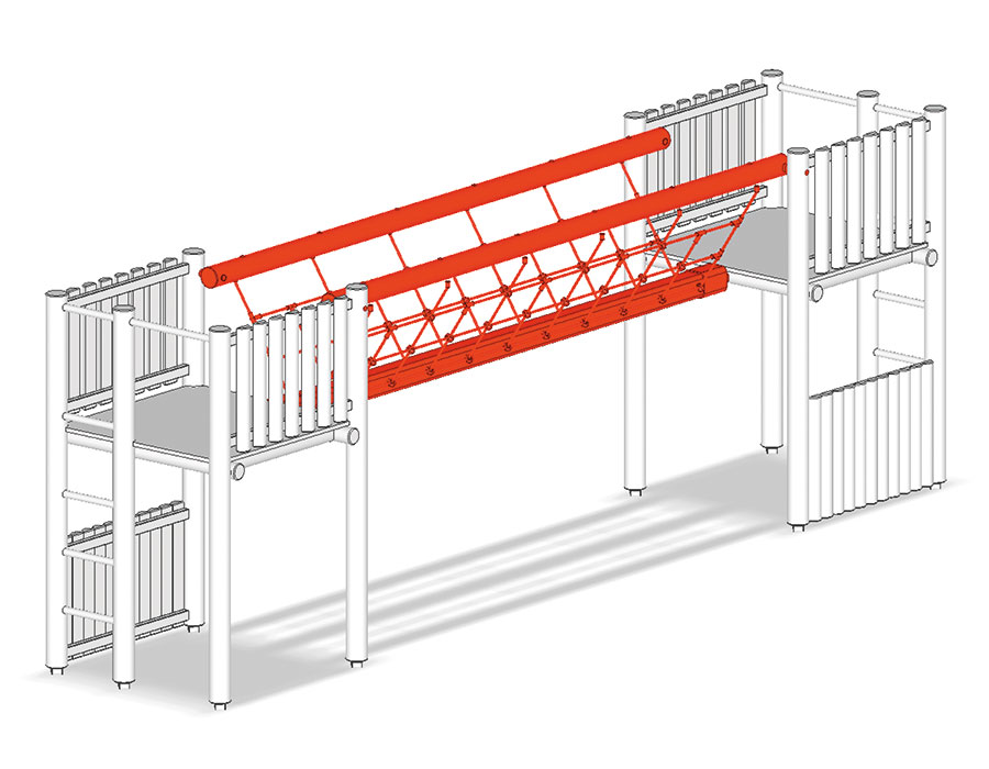 Ponte giungla per lunghezza 400 cm, in legno di pino svizzero multincollato e impregnato a pressione, corda intrecciata, con catene zincate a caldo, da torre a torre.