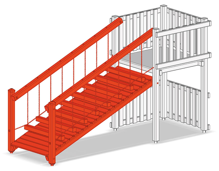 Sentiero di catene, altezza 80 cm, larghezza 114 cm, lunghezza 400 cm, con due balaustre e podio di sicurezza, dal terreno alla torre.