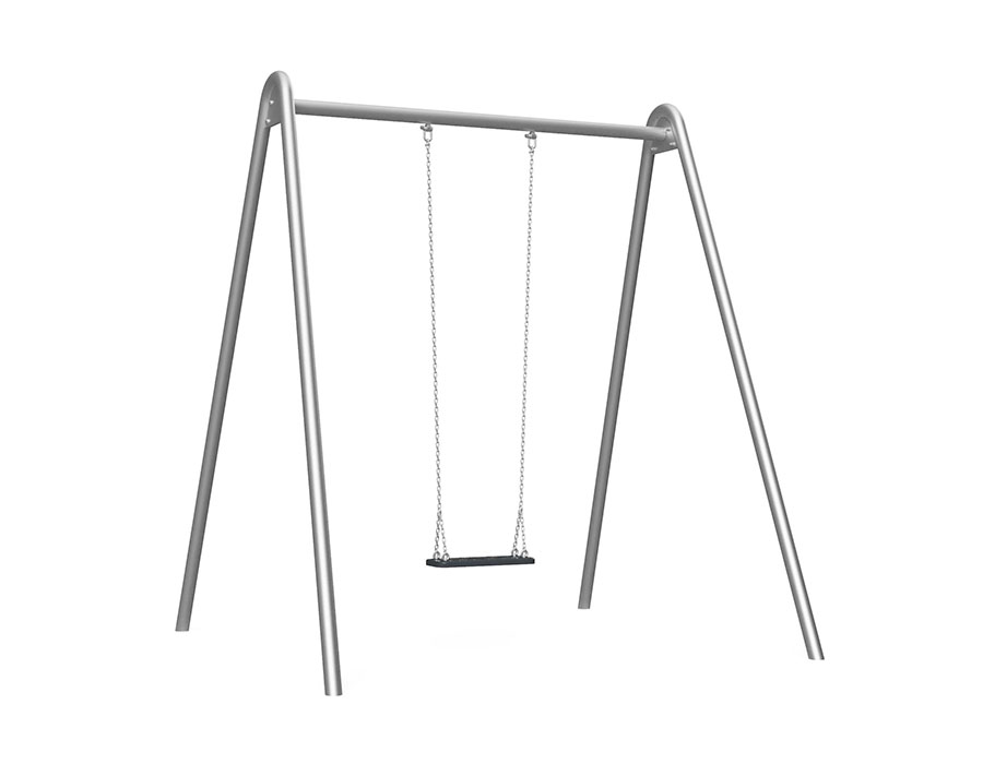 Altalena, costruzione di tubi d'acciaio zincati a fuoco, sospensioni d'acciaio inossidabile per uno seggiolino, per una profondità di installazione minima di 50 cm.