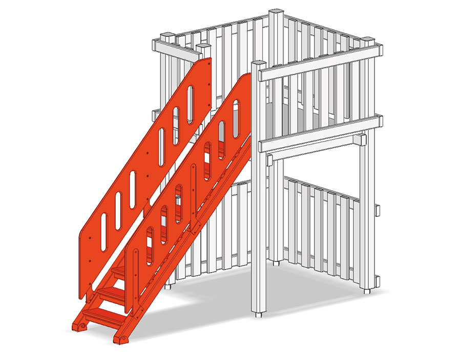 Scale di salita per l'altezza della piattaforma 120 cm, in legno di pino svizzero multincollato e impregnato a pressione, con balaustre in polietilene, colore verde.