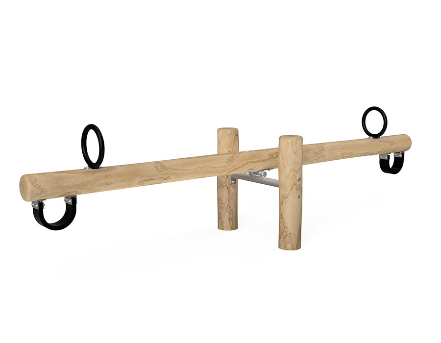 Dondolo fatto di durame di robinia non trattato chimicamente e levigato, cuscinetto in acciaio inossidabile, con annelli d'acciaio rivestiti di gomma per appiccarsi.