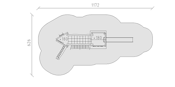 Combinazione di torrete fatto di durame di robinia non trattato chimicamente e levigato, altezza della piattaforma 180 cm, con tetto a capanna e ascesa di piolo, parete da arrampicata, scivolo in poliestere grigio/antracite, ponte di rete, ascesa di tronco d'albero e scala di corda.