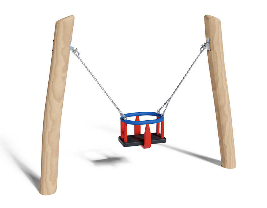 Altalena per bambini in legno di robinia non trattato chimicamente, levigato, con seggiolino per bambini, dispositivi di sospensione e collegamento a catena in acciaio inox, profondità minima di installazione per la protezione anticaduta naturale 80 cm / sintetica 60 cm.