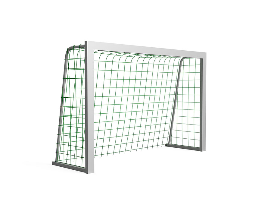 But d'entrainement mini, en tube d'aluminium, anodisé incolore, mobile, avec filet et archets de sécurité pour le filet, livraison en pièces détachées.