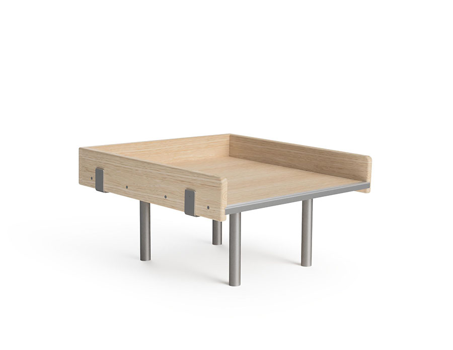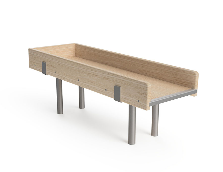 Grondaia con elementi laterali in larice svizzero grezzo, dimensioni 40 x 120 cm, supporti per i piedi in acciaio inossidabile, per una profondità di installazione minima di 50 cm.