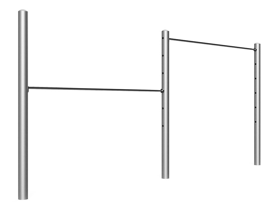 Sbarra fissa costruzione di tubi d'acciaio zincati a fuoco, in 2 parti, regolabile da 75 a 200 cm, barre orizzontali in acciaio cromato, profondità minima di installazione 50 cm.