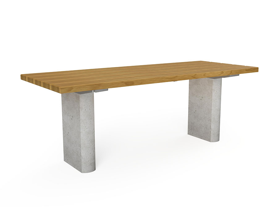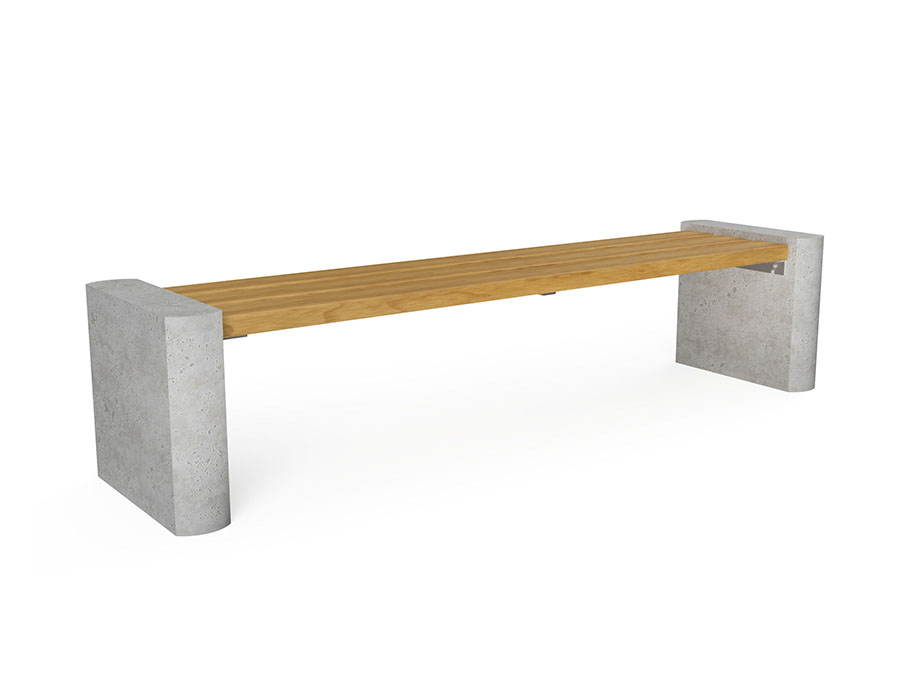 Panchina in legno di pino svizzero multincollato e impregnato a pressione, lunghezza 200 cm, con spalliera, mensole di calcestruzzo.