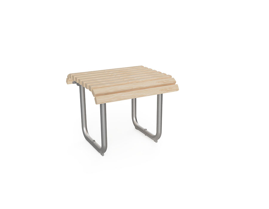 Tavolo da picnic in tubolare d'acciaio zincato a caldo, rivestimento in larice svizzero grezzo, lunghezza 200 cm, larghezza 232 cm, con schienale su entrambi i lati, autoportante.